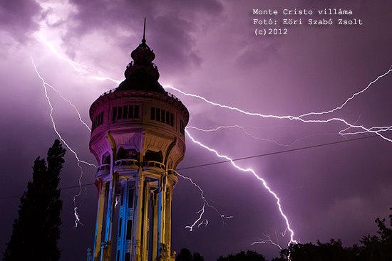 Fotózzunk villámot – javasoltam, miközben tudtam, egyikünknél sincs állvány vagy vezetékes kioldó – ezek általában nem szükségesek színházi fotózáshoz, de a villámfotózás alapvető kellékei. Az sem árt, ha van a táskában egy extra nagy látószögű objektív is, hogy az égbolt minél nagyobb területe kerülhessen a képre, hiszen kiszámíthatatlan, hogy a villám éppen hol jelenik meg. Ezek nélkül villámot fotózni olyan, mint sebes patakban kézzel halat fogni. A jó reflex sem ér semmit mázli nélkül. De – mint tudjuk – a Jóisten szereti a bolondokat, és aki manapság fotózásból próbál megélni Magyarországon, az nyilván bolond – ez a tudat reményt adott. Felmásztunk hát a színpadra, kameráinkat a jó öreg víztorony irányába fordítottuk, mutató ujjunk az elsütő gombon, és vártunk. Negyed óra után ez a pozíció inkább erőnléti edzés, mint fotózás. Fél óra elteltével már mi magunk is röhögtünk, ha az általunk nyújtott látványra gondoltunk: két hülye áll mozdulatlanul a színpadon, szemük előtt a magasra emelt fényképezőgép…és akkor lecsapott a mennykő. Két-két expo kattant…